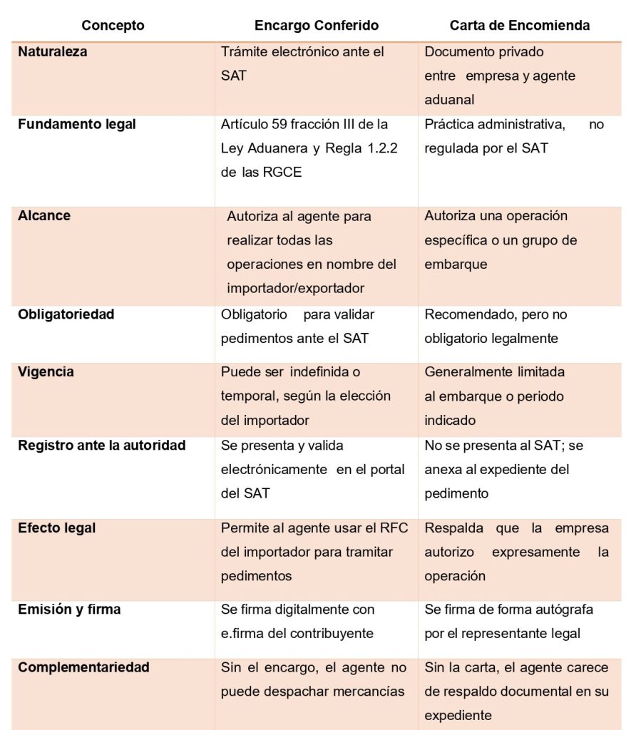 Aunque el Encargo Conferido y la Carta de Encomienda están estrechamente relacionados y persiguen un mismo propósito autorizar al agente aduanal para representar a una empresa en operaciones de comercio exterior, es fundamental entender que no son lo mismo. Cada uno cumple una función específica dentro del marco legal y operativo aduanero.